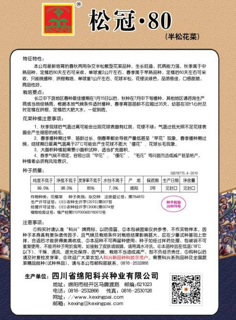 1、購(gòu)買時(shí)認(rèn)準(zhǔn)“科興”商標(biāo),謹(jǐn)防假冒。2、包裝圖片僅供參考,不作為實(shí)物樣本。3.因氣候、栽培不當(dāng)造成減產(chǎn),想不負(fù)經(jīng)濟(jì)責(zé)任。4.注意軟腐病、灰需病、菌核病、蚜蟲等的危害。5、本品種不可再留種使用、種子如經(jīng)拌藥處理,包裝袋不可重復(fù)使用,不能將種子用于食用。如接觸皮膚眼睛,請(qǐng)立即用清水沖洗。6,如短期貯藏,請(qǐng)貯存于低溫干燥處,避免兒童接.一旦兒童誤食后.請(qǐng)遵醫(yī)處理。7、高溫季節(jié)栽培易抽苔,因此要加強(qiáng)肥水管理,否則會(huì)造成產(chǎn)量降低。