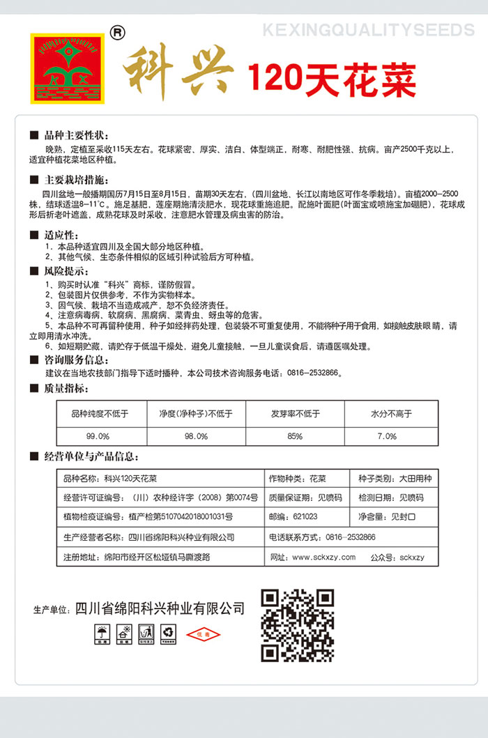 1、購買時認準“科興”商標,謹防假冒。2、包裝圖片僅供參考,不作為實物樣本。3.因氣候、栽培不當造成減產,想不負經濟責任。4.注意軟腐病、灰需病、菌核病、蚜蟲等的危害。5、本品種不可再留種使用、種子如經拌藥處理,包裝袋不可重復使用,不能將種子用于食用。如接觸皮膚眼睛,請立即用清水沖洗。6,如短期貯藏,請貯存于低溫干燥處,避免兒童接.一旦兒童誤食后.請遵醫處理。7、高溫季節栽培易抽苔,因此要加強肥水管理,否則會造成產量降低。
