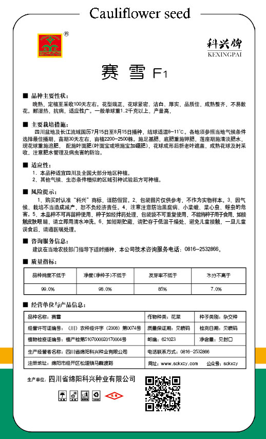 1、購買時認準“科興”商標,謹防假冒。2、包裝圖片僅供參考,不作為實物樣本。3.因氣候、栽培不當造成減產,想不負經濟責任。4.注意軟腐病、灰需病、菌核病、蚜蟲等的危害。5、本品種不可再留種使用、種子如經拌藥處理,包裝袋不可重復使用,不能將種子用于食用。如接觸皮膚眼睛,請立即用清水沖洗。6,如短期貯藏,請貯存于低溫干燥處,避免兒童接.一旦兒童誤食后.請遵醫處理。7、高溫季節栽培易抽苔,因此要加強肥水管理,否則會造成產量降低。