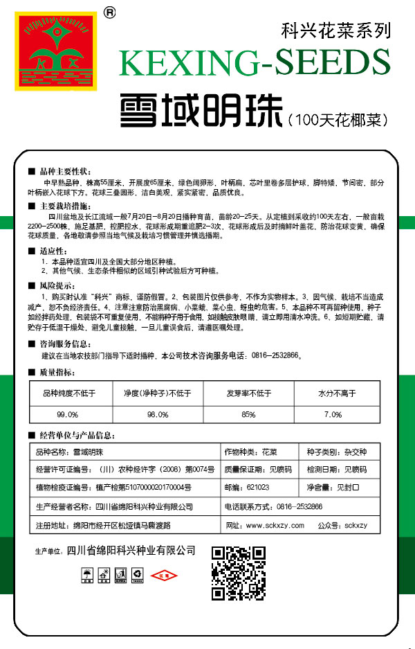 1、購買時認準“科興”商標,謹防假冒。2、包裝圖片僅供參考,不作為實物樣本。3.因氣候、栽培不當造成減產,想不負經濟責任。4.注意軟腐病、灰需病、菌核病、蚜蟲等的危害。5、本品種不可再留種使用、種子如經拌藥處理,包裝袋不可重復使用,不能將種子用于食用。如接觸皮膚眼睛,請立即用清水沖洗。6,如短期貯藏,請貯存于低溫干燥處,避免兒童接.一旦兒童誤食后.請遵醫處理。7、高溫季節栽培易抽苔,因此要加強肥水管理,否則會造成產量降低。