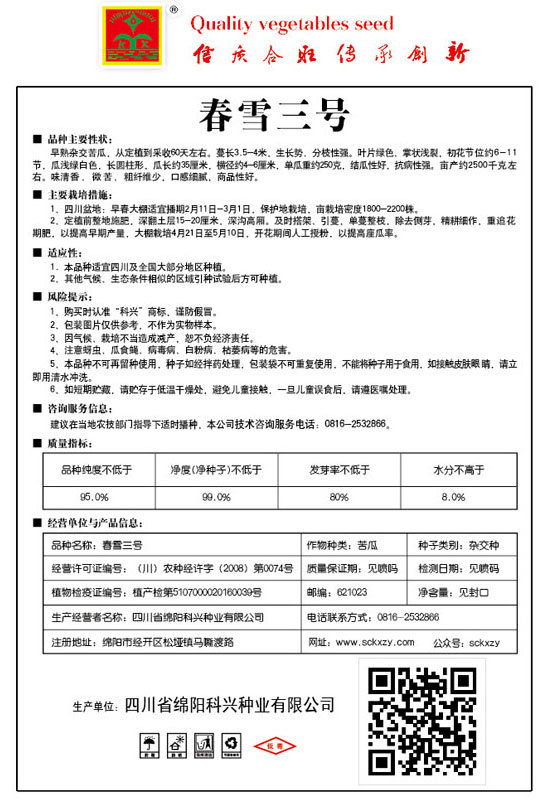 1、購買時認準“科興”商標,謹防假冒。2、包裝圖片僅供參考,不作為實物樣本。3.因氣候、栽培不當造成減產,想不負經濟責任。4.注意軟腐病、灰需病、菌核病、蚜蟲等的危害。5、本品種不可再留種使用、種子如經拌藥處理,包裝袋不可重復使用,不能將種子用于食用。如接觸皮膚眼睛,請立即用清水沖洗。6,如短期貯藏,請貯存于低溫干燥處,避免兒童接.一旦兒童誤食后.請遵醫處理。7、高溫季節栽培易抽苔,因此要加強肥水管理,否則會造成產量降低。